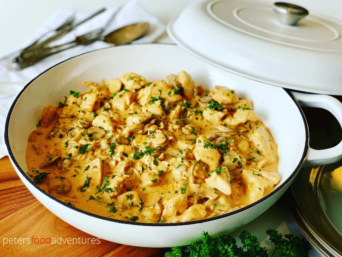 - Stir in the cashew-broth mixture, paprika, and Worcestershire sauce. Mix well and simmer until chicken is cooked through.